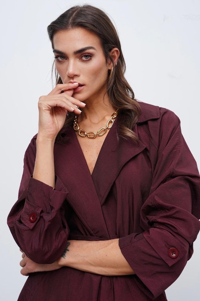 Ballonbroek met wrapblazer. In parachute stof. Kleur: Bordeaux.Pre-order: Levering 1/2 maart.