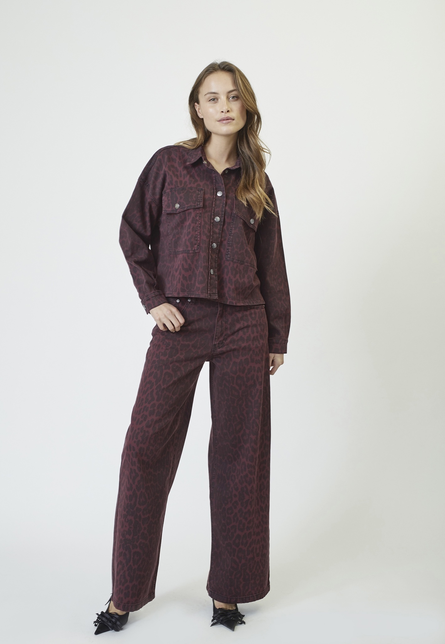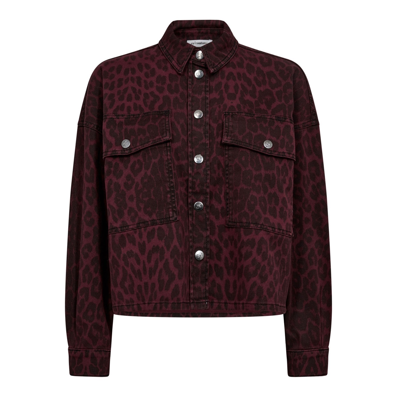Afbeelding van CO’COUTURE LEO DENIM CROP SHIRT BURGUNDY LEO