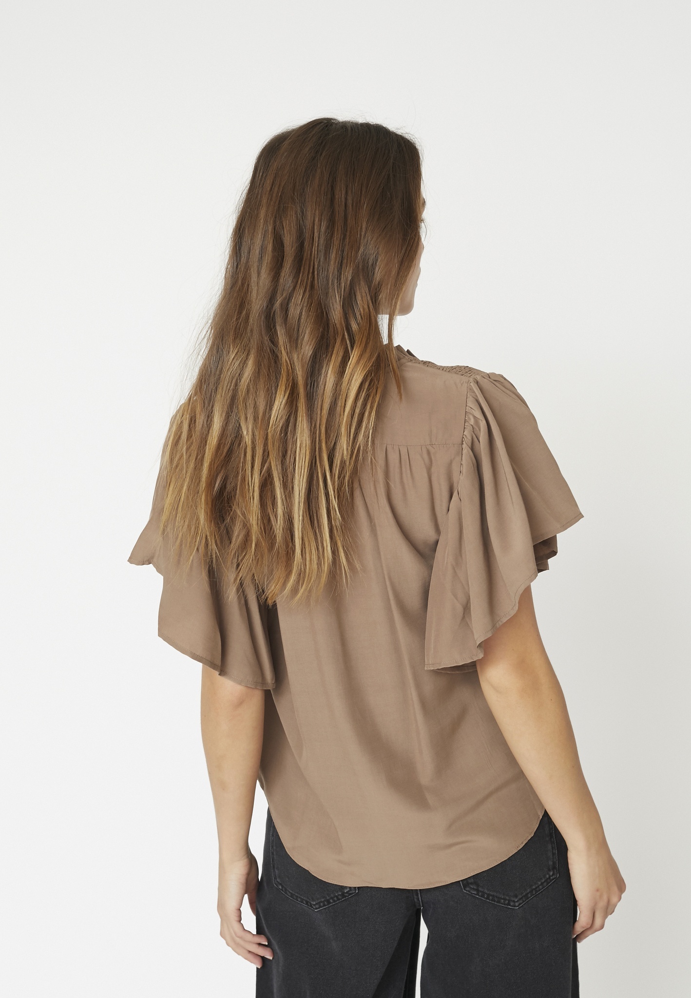 CO’COUTURE TORA FRILL V-TOP WALNUT Online Kopen | Kae Mode