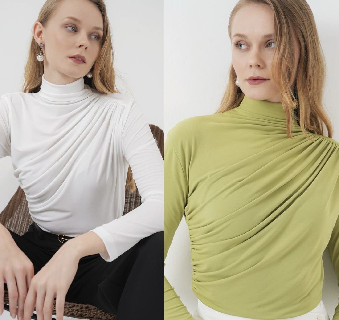 DRAPED LONGSLEEVE TOP *IN WHITE & GREEN