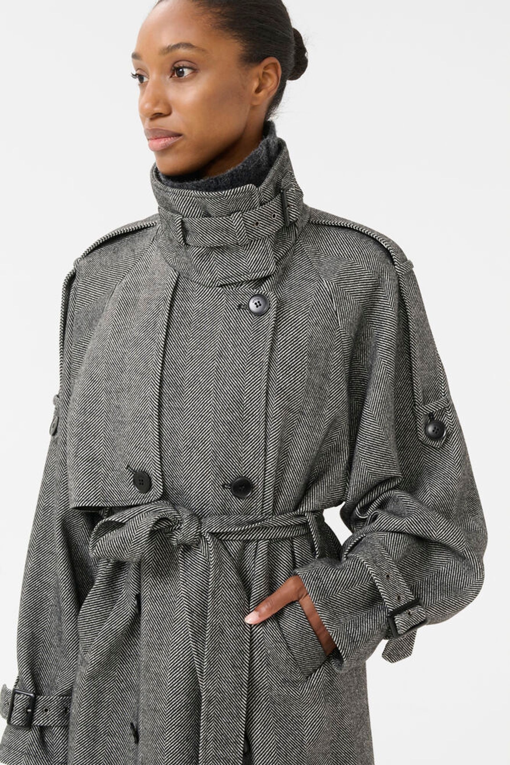 luxe uitgewerkte lange jas van deens designmerk GESTUZ