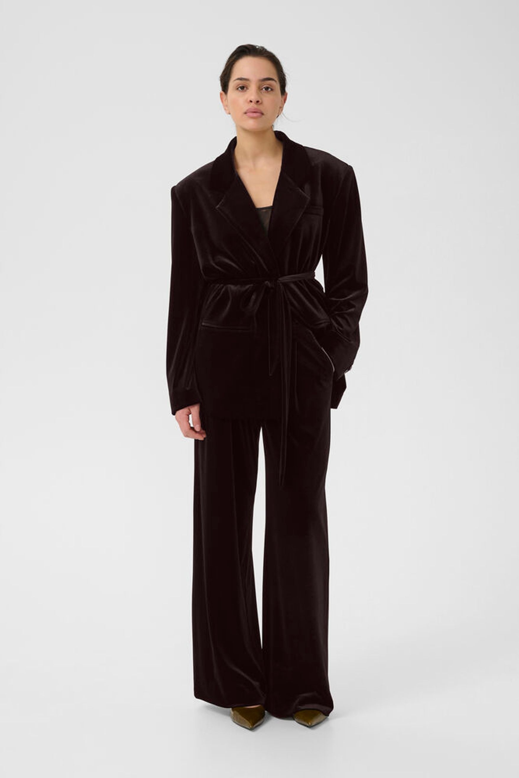 Feestdagen outfit in the pocket! Hierin dans, eet, beweeg en chill je. Flats of hakken erbij, geweldig met lange blouse of als pak in originele kleur bruin.