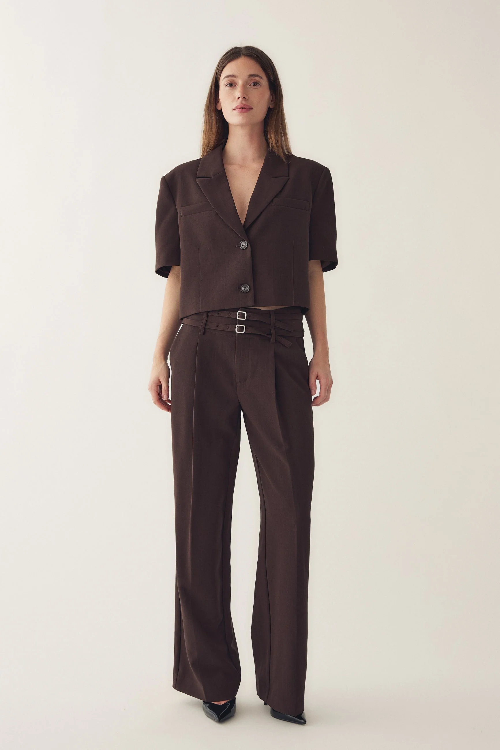Noella Darryl HW Pants is een high-waist broek met wijde pijpen, riemlussen en twee smalle riemen voor een stijlvolle, aansluitende uitstraling. Hélemaal de trend: Monochrome outfits, dus combineer met het bijpassende jasje.