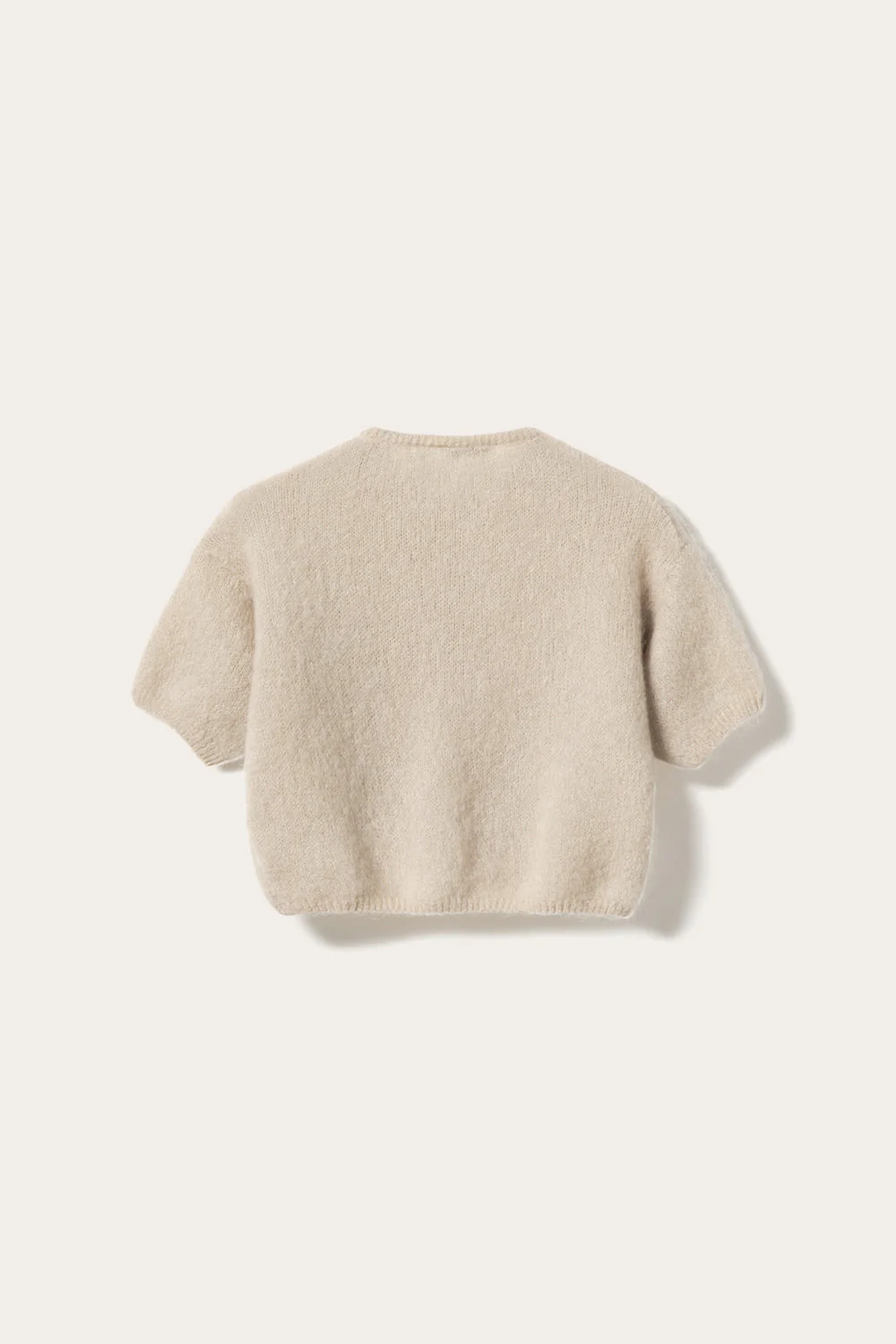 De N-Lorell Knit Cardigan is gemaakt van een zachte, fluffy luxe mohairmix. De cardigan heeft korte mouwen en een knoopsluiting aan de voorkant. Made in Italy. Pasvorm: Ruim / Loose Fit Kleur: Beige/Camel.