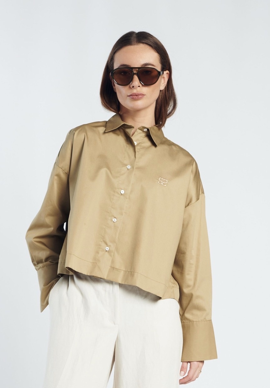 Paula Blouse is een verfijnde blouse met een moderne, ontspannen pasvorm. Uitgevoerd in een zachte olijftint en gemaakt van een soepele kwaliteit die mooi valt. De rechte snit en subtiele details geven de blouse een minimalistische uitstraling, waardoor dit item eindeloos te combineren is; van casual tot gekleed. Relaxed fit.